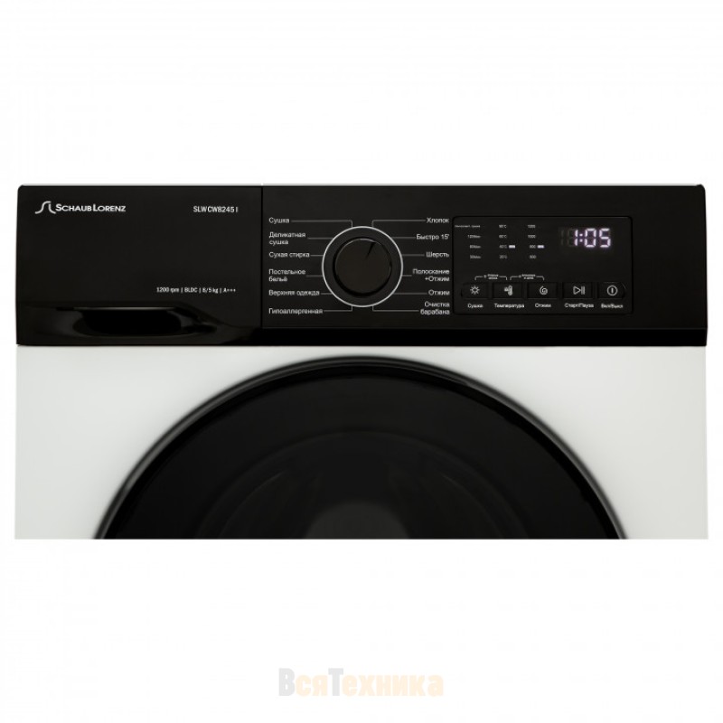 Стирально-сушильная машина Schaub Lorenz SLW CW8245 I объединяет в одном корпусе полный цикл обработки белья. Устройство предназначено для стирки с последующей сушкой, что позволяет обойтись без отдельно стоящей сушильной машины. Загрузка барабана составляет до восьми килограммов белья для стирки и до пяти килограммов для сушки.