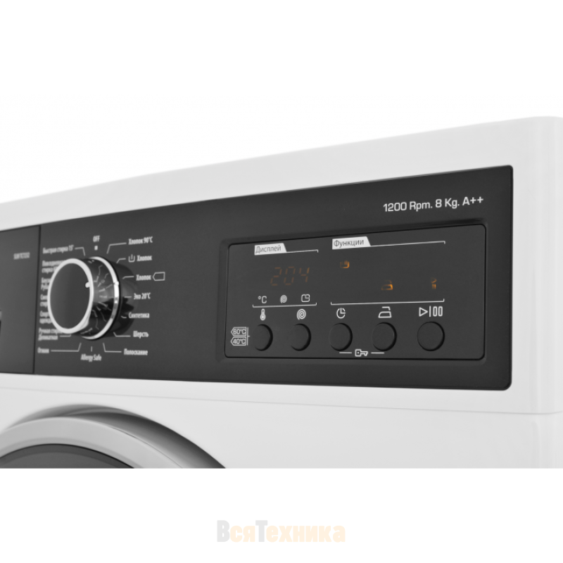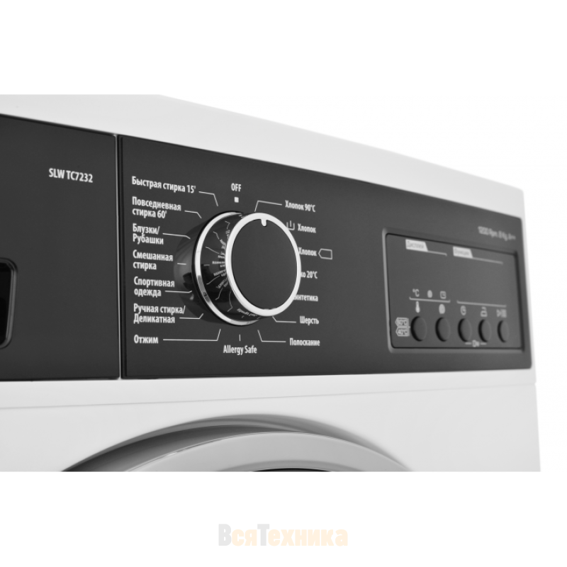 Белая стиральная машина с «жемчужным» барабаном для бережного ухода за одеждой. Система Eco-Logic и 15 программ позволяют точно выбрать настройки для вещей из хлопка, шерсти, синтетики и других тканей. Специальные режимы, защищающие от аллергенов и предотвращающие появление крупных складок, облегчают стирку.