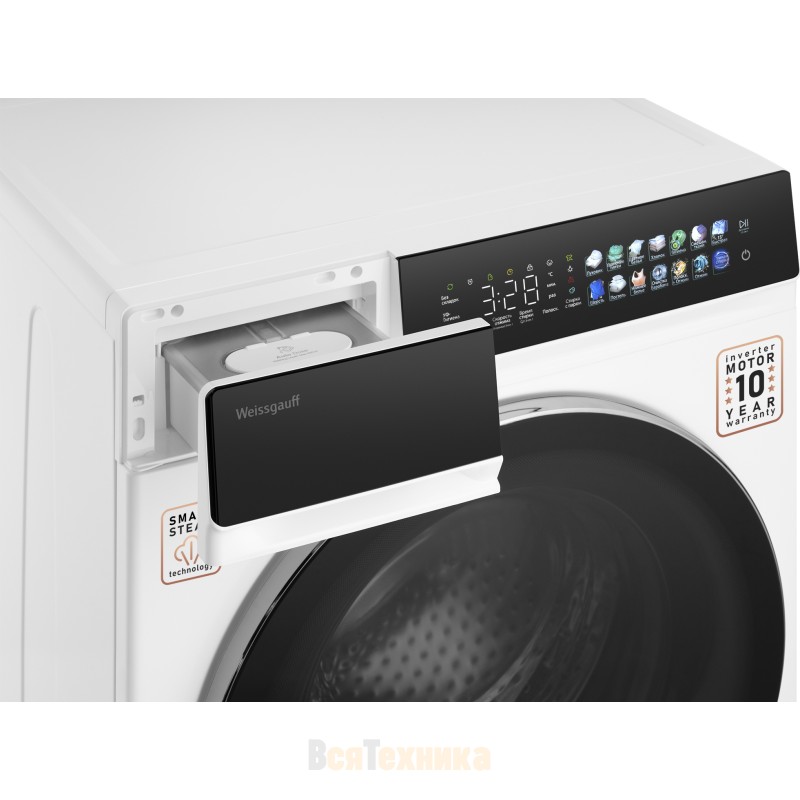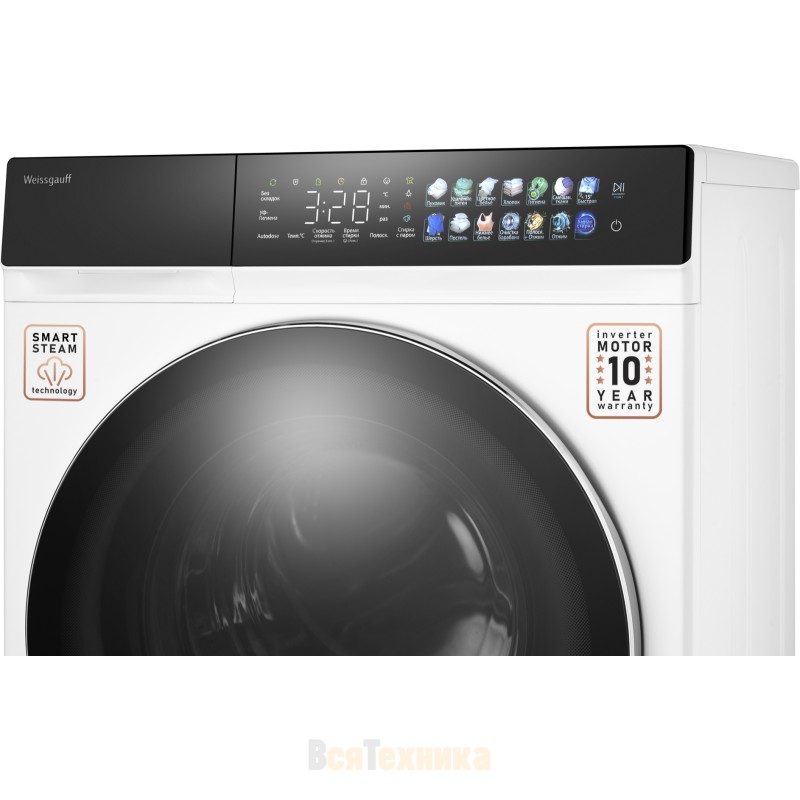 Отдельностоящая стиральная машина Weissgauff, инверторным двигателем, функцией пара и обработкой ультрафиолетом, имеющая показатели загрузки до 11 кг белья и скорости отжима до 1400 оборотов в минуту, а также цветной дисплей SMART SCREEN и функцию автодозирования - это одна из наиболее передовых моделей Weissgauff в категории стиральных машин!