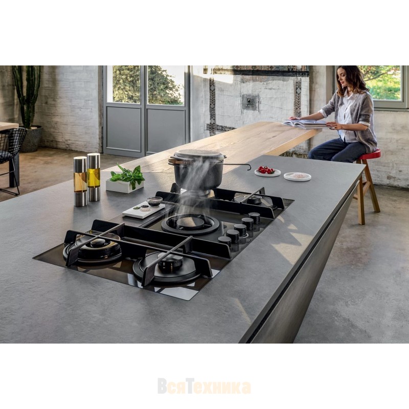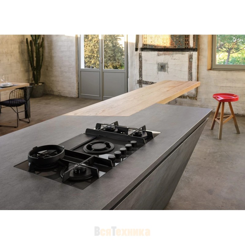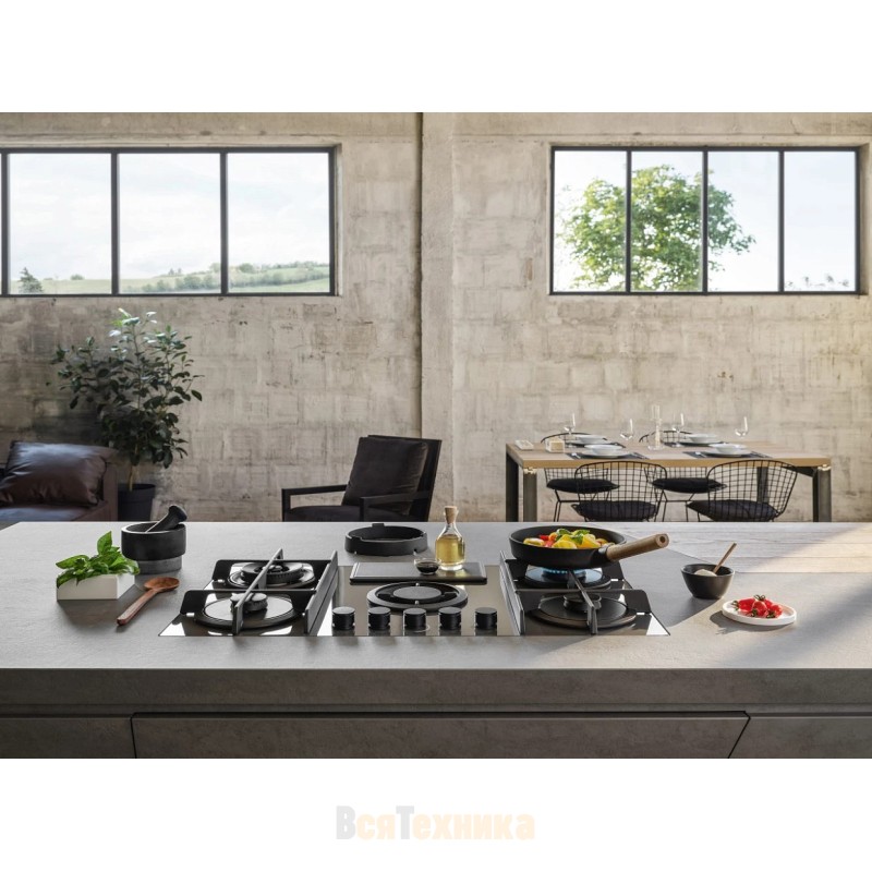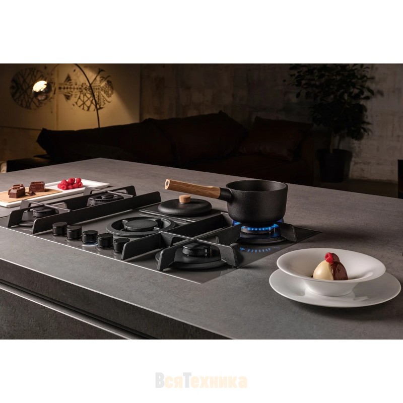 Первая варочная панель, которая кардинально меняет подход к организации кухонного пространства. Она идеально подходит для тех, кто ценит мощь газовой плиты, чистоту воздуха, многофункциональность и эргономичный дизайн, созданный для профессионального комфорта.