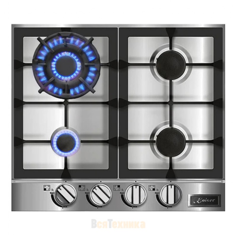 Газовая поверхность Kaiser KG 6357 Turbo из нержавеющей стали создана для профессиональной готовки блюд. Автоматический электроподжиг позволит включить любую конфорку и не обжечься. Система «Газ-контроль» предотвратит утечку газа, если пламя случайно погаснет. Если вы хотите использовать устройство на даче или в частном доме, в комплекте идут форсунки для подключения баллона.