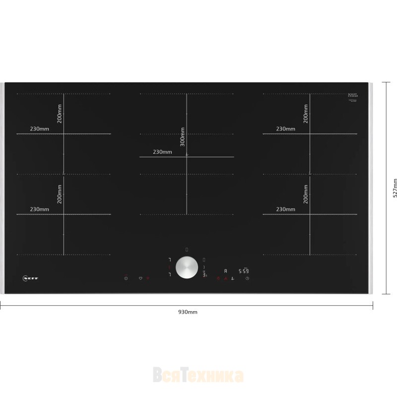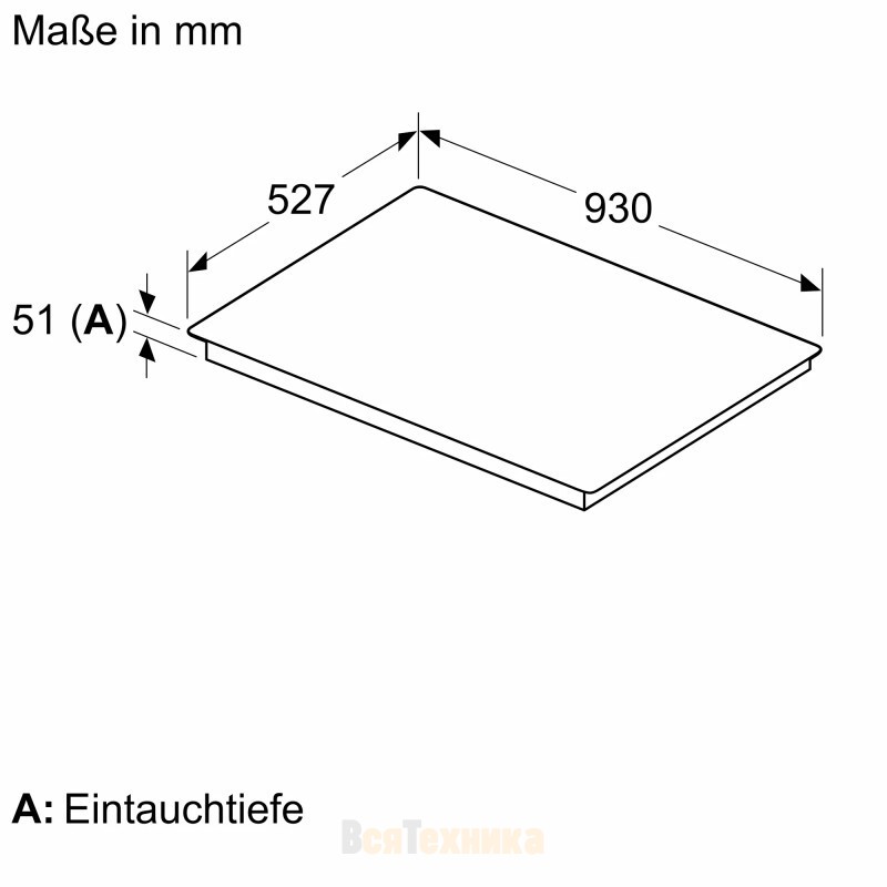 Габариты устройства впечатляют своими размерами: ширина составляет 93 см, глубина — 52,7 см, а высота всего 5,1 см. Тип поверхности — стеклокерамическая, что обеспечивает долговечность и простоту ухода.