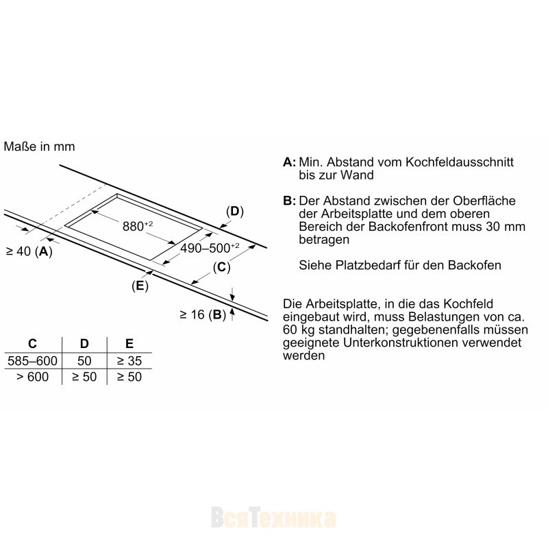 Минимальная толщина столешницы, мм | 16 |