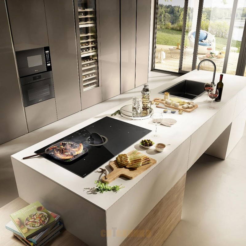Габариты панели составляют 51.5 см в высоту, 83 см в ширину и 21 см в глубину, что позволяет встроить ее вровень со столешницей, создавая гармоничное пространство на кухне. При этом размер ниши для встраивания составляет 80.7×49.2 см.