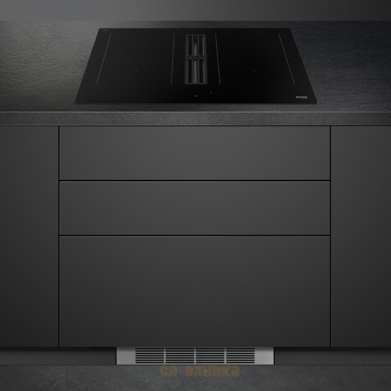 Smeg HOBD382N2 инновационная встраиваемая островная вытяжка-панель Classica. Она объединяет в одном ультранизком модуле 4-конфорочную индукционную панель с технологией MultiZone и мощную вытяжку с периметральным всасыванием и автовентиляцией. Идеальное решение для кухонного острова, где важны стиль, компактность и максимальная функциональность без нависающих конструкций.