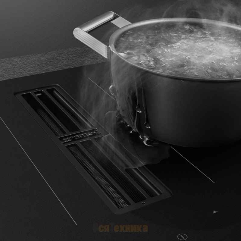Тип всасывания: Периметральное всасывание по краям стеклокерамической панели. Пар и запахи улавливаются эффективно со всех сторон, не мешая процессу готовки.