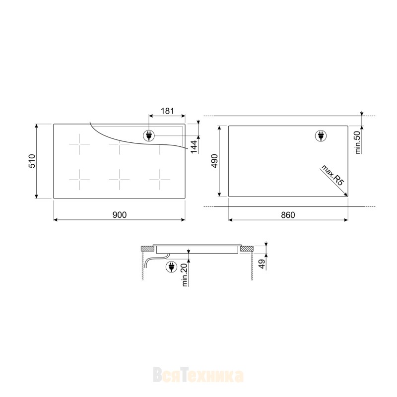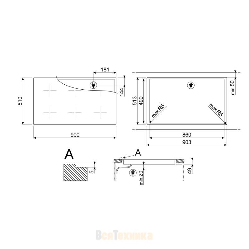 Дизайн (Коллекция Classica): Классический ретро-стиль SMEG. Черная матовая стеклокерамика с прямым краем. Панель имеет ультранизкий профиль, что позволяет встраивать её практически вровень со столешницей для элегантного бесшовного вида.