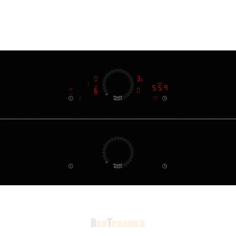 Управление поверхностью осуществляется с помощью сенсорной панели с поворотным регулятором TwistPad® Fire, который позволяет легко и точно настраивать нужные параметры. Сенсорная панель оснащена светодиодным дисплеем, который отображает текущие настройки и индикаторы остаточного тепла для каждой конфорки, что повышает безопасность эксплуатации. Функции quickStart и reStart обеспечивают автоматическое распознавание посуды и восстановление предыдущих настроек после кратковременного отключения питания, что делает процесс готовки ещё более удобным.