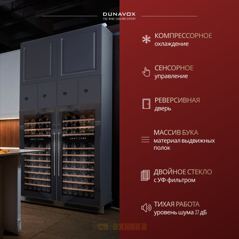Но не один подвал или погреб не может гарантировать защиту от посторонних запахов, поэтому мы установили в шкаф угольный фильтр, он предотвратит их появление. Ведь посторонние запахи с легкостью могут испортить вкус вина! Гарантировано, что винный шкаф Dunavox DX-74.230DB - обеспечит для вас все необходимые высококачественные условия для долгого хранения и созревания вин. Ведь хорошее вино - репутация хозяина.
