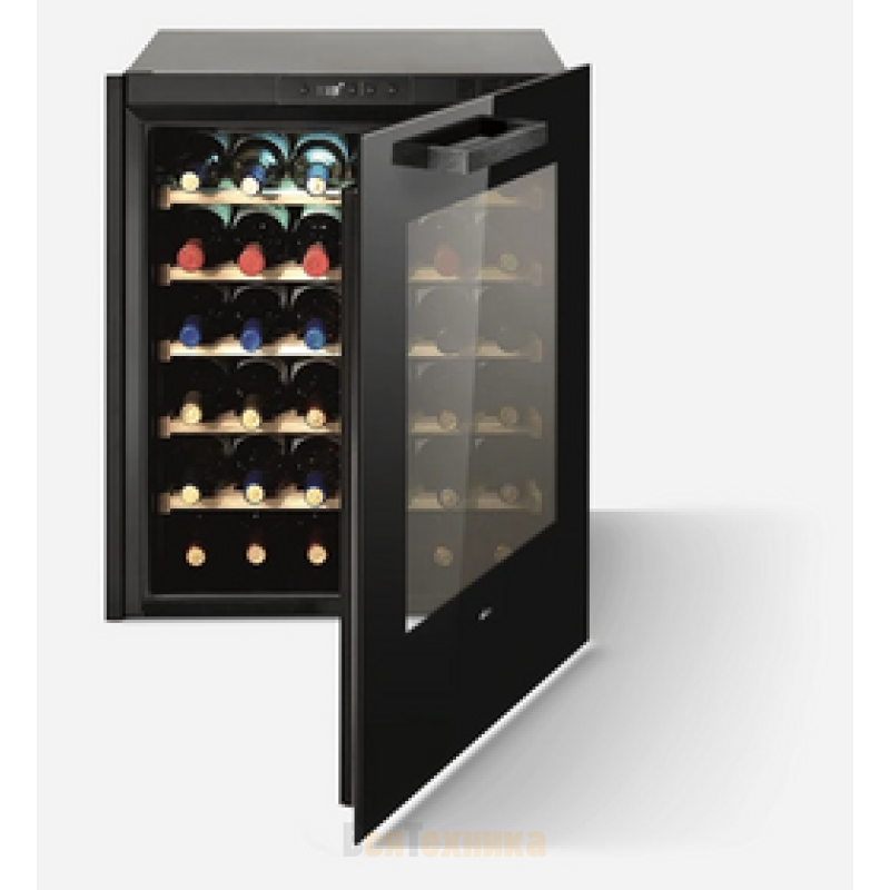 Габариты устройства составляют 60 см в ширину, 72 см в высоту и 55 см в глубину, что позволяет встроить шкаф в кухонный гарнитур или барную зону. Общая вместимость — до 36 бутылок вина, а объём внутренней камеры составляет 99 литров, что идеально подходит как для частных коллекций, так и для ресторанов или винных уголков.