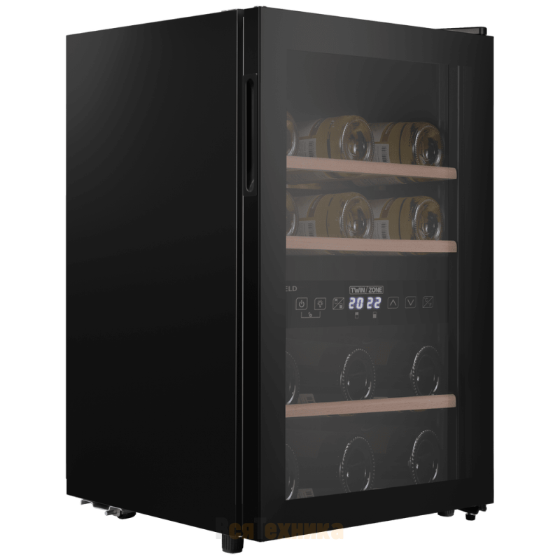 Управление шкафом осуществляется с помощью сенсорных переключателей и электронного термостата. Это позволяет точно устанавливать необходимую температуру в диапазоне от 5 до 22 градусов Цельсия и контролировать влажность в диапазоне от 50 до 80%. Устройство оборудовано двумя отдельными камерами, что позволяет хранить вино при разных температурах. В шкафу можно разместить до 16 бутылок, а полезный объем составляет 50 литров. Полки из бука не только выглядят стильно, но и обеспечивают надежное хранение бутылок. В случае повышения температуры, винный шкаф предупредит вас звуковым сигналом.
