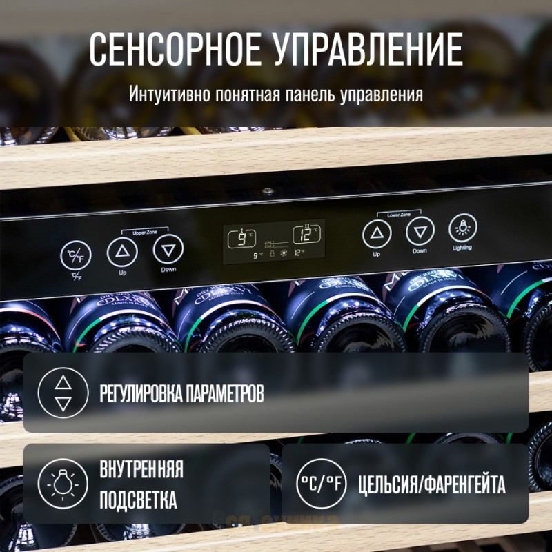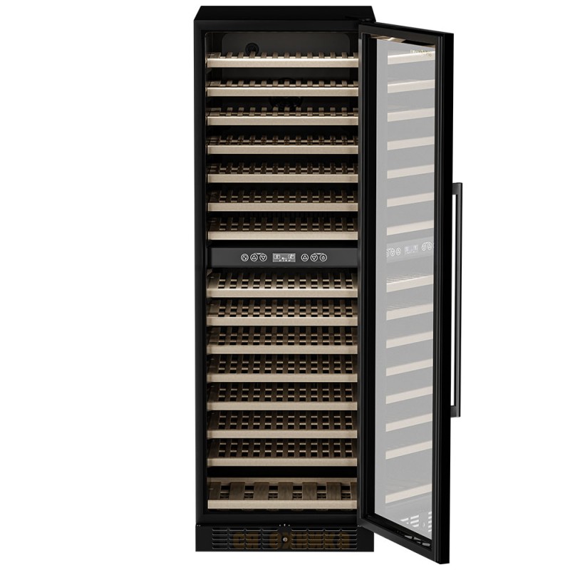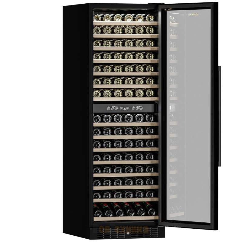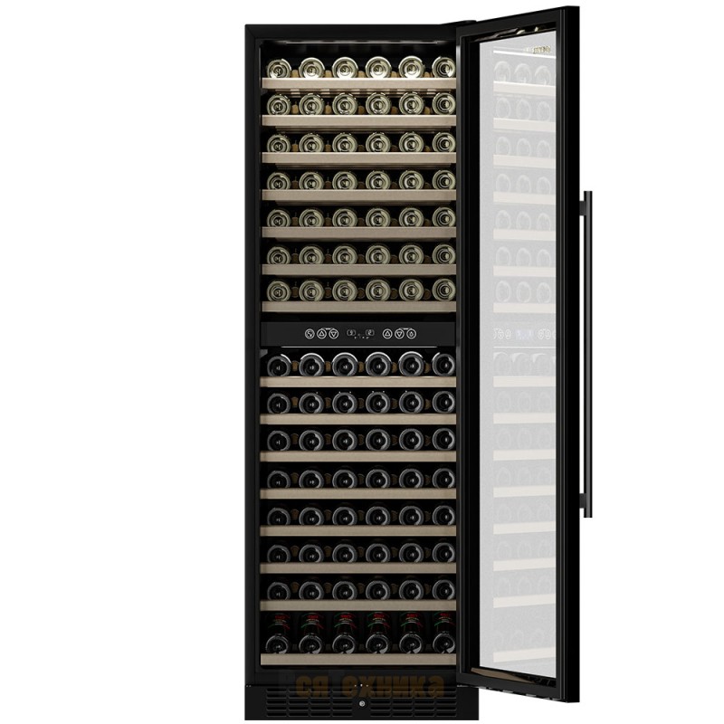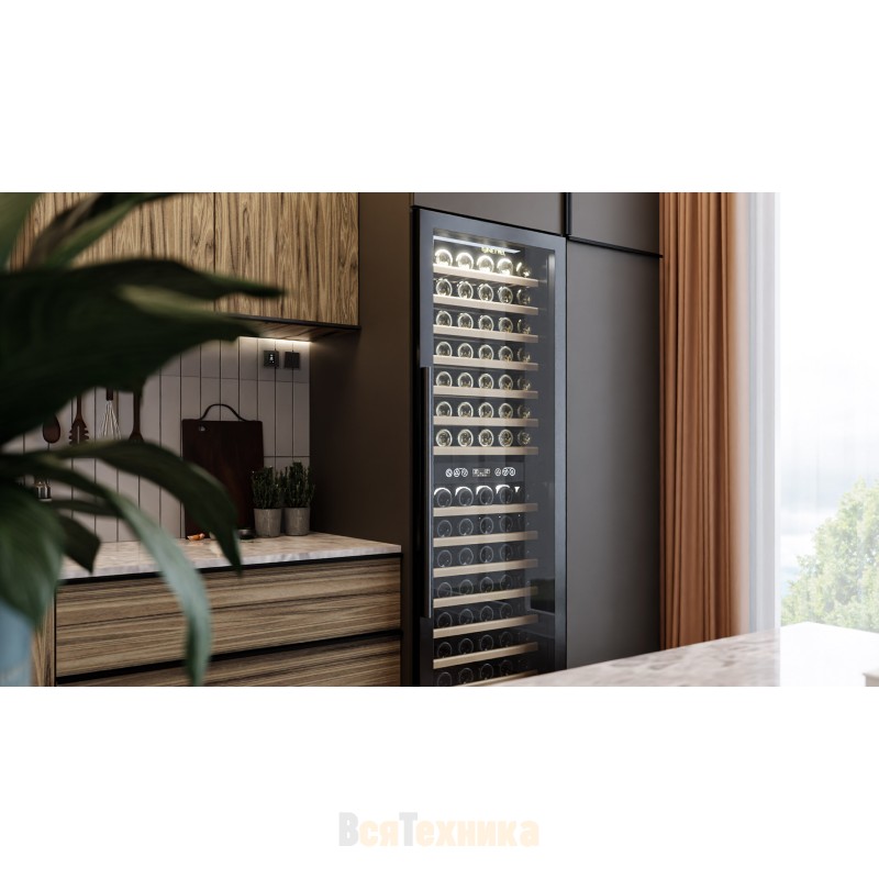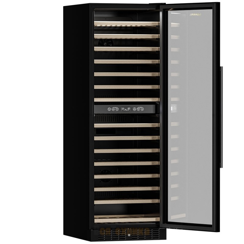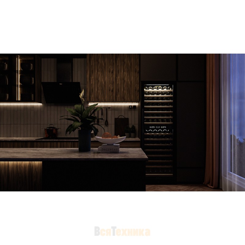 Компрессорный винный шкаф Meyvel MV160-KBT2 обладает большой вместимостью и способен разместить до 160 бутылок. Располагаются они на полках из массива бука. Внутреннее пространство шкафа разделено на 2 температурные зоны с возможностью настраивать каждую из них: диапазон нижней зоны от +10°C до +18°C, а верхней - от + 5°C до +10°C. Холодильник поддерживает влажность в диапазоне 60-80%, как в настоящем винном погребе.