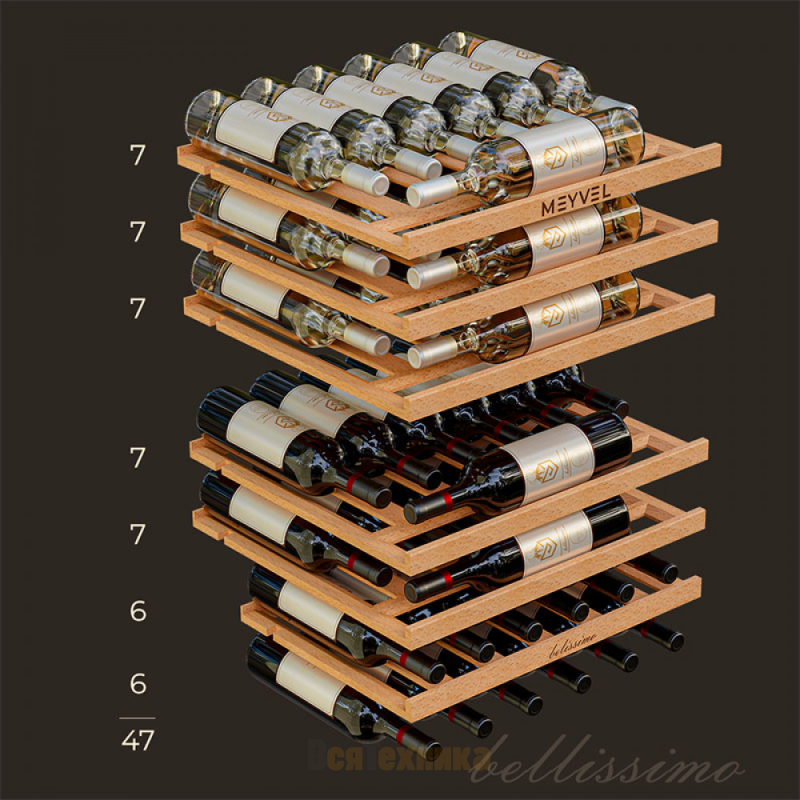 Модель MV47PRO-KBB2 рассчитана на 47 бутылок формата «Бордо» (но есть и полка для нестандартных бутылок). Для их размещения предусмотрены пять полок из натурального бука. Дерево выбрано не случайно: оно не накапливает посторонние запахи и создаёт благоприятную среду для вина. А благодаря компактности, устройство отлично подойдёт и для небольшой коллекции в уютно ресторане, и для домашнего бара. Ещё одна особенность этого винного шкафа — полка-трансформер, которую можно использовать как для простого хранения, так и для демонстрации напитков.