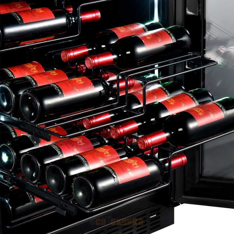 Этот шкаф подходит как для профессиональных сомелье, так и для любителей вина. Он вмещает бутылки разных размеров, включая Бордо, Бургундию, Шампанское, Рислинг и даже Магнум.