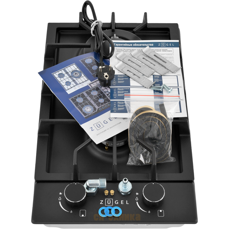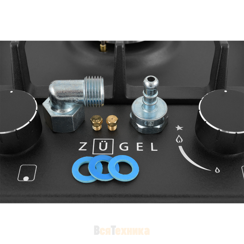 Встраиваемая газовая варочная панель ZUGEL ZGH290B, черная матовая