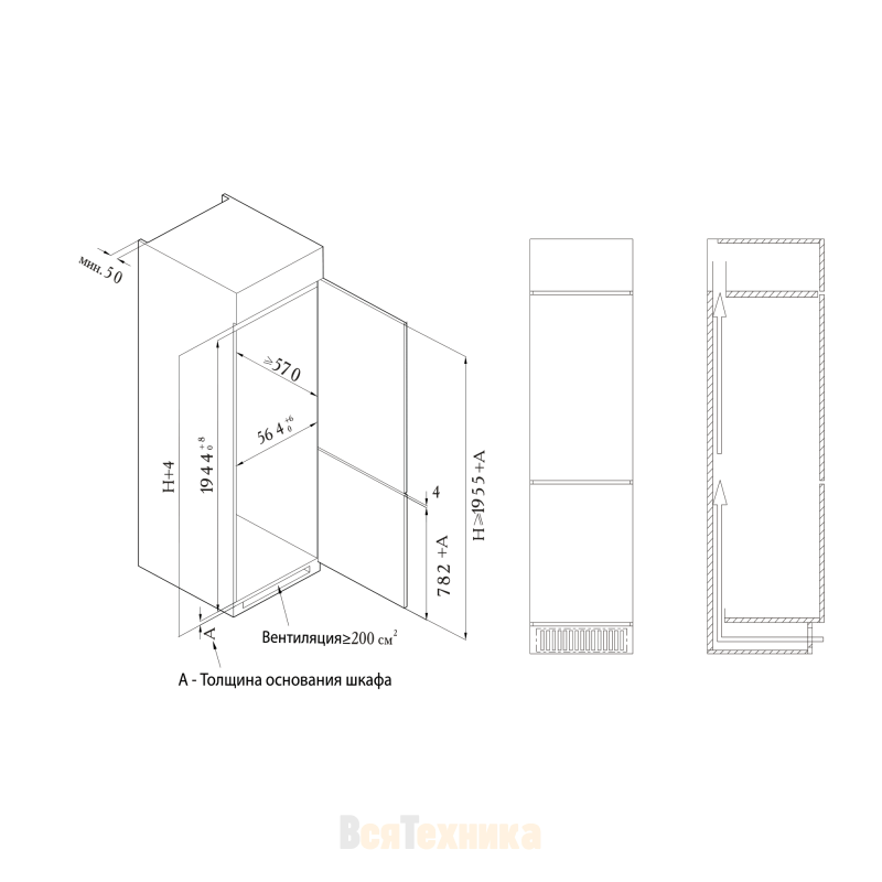 Размеры ниши для встраивания (ВхШхГ)(см) | 194,4x56,4x57 |