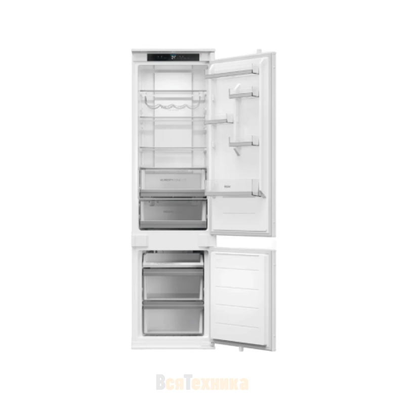 Общий полезный объём составляет 270 литров, из которых 209 литров приходится на холодильную камеру и 61 литр на морозильное отделение. В холодильном отсеке предусмотрены 4 полки, 5 дверных карманов, 2 ящика для овощей, прозрачная полка для бутылок и зона сохранения свежести. Морозильная камера оборудована 3 выдвижными прозрачными ящиками, а также комплектуется формочкой для льда и 2 лотками для яиц.
