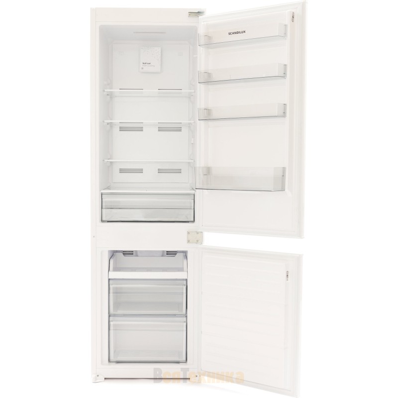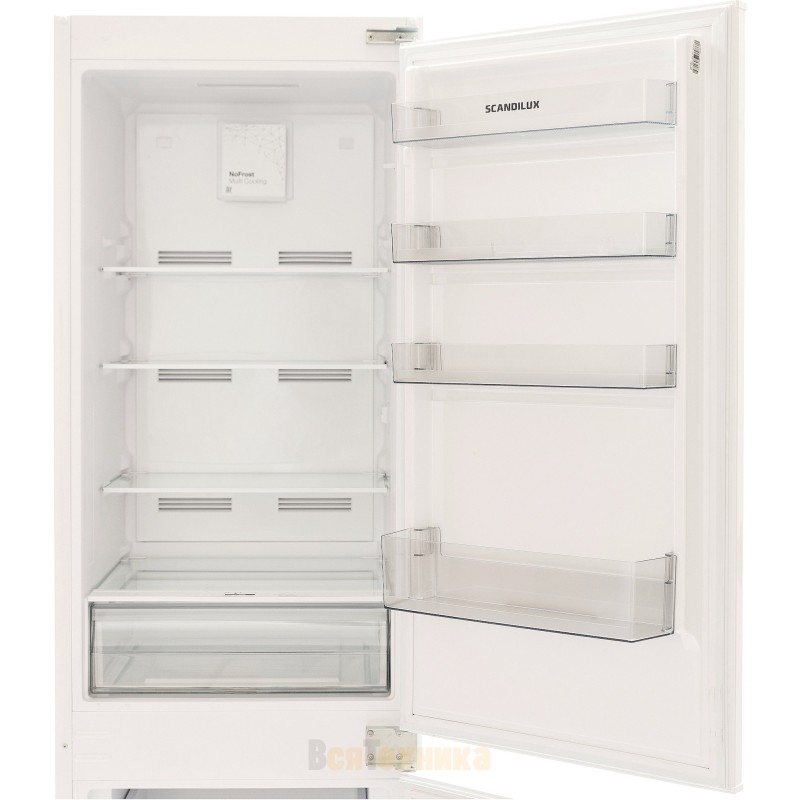 Встраиваемый холодильник Scandilux RFBI126 объединяет современную систему охлаждения No Frost, продуманную эргономику и энергоэффективность класса A++. Он создан для тех, кто хочет избавиться от необходимости ручной разморозки, сохранив при этом компактные размеры и удобство размещения внутри кухонного гарнитура. При высоте сто семьдесят семь сантиметров и стандартной ширине пятьдесят четыре сантиметра модель легко интегрируется в нишу с слайдерным креплением фасадов и обеспечивает общий полезный объём двести пятьдесят литров. Холодильное отделение вмещает сто семьдесят литров, а морозильная камера — шестьдесят три литра, располагаясь снизу.