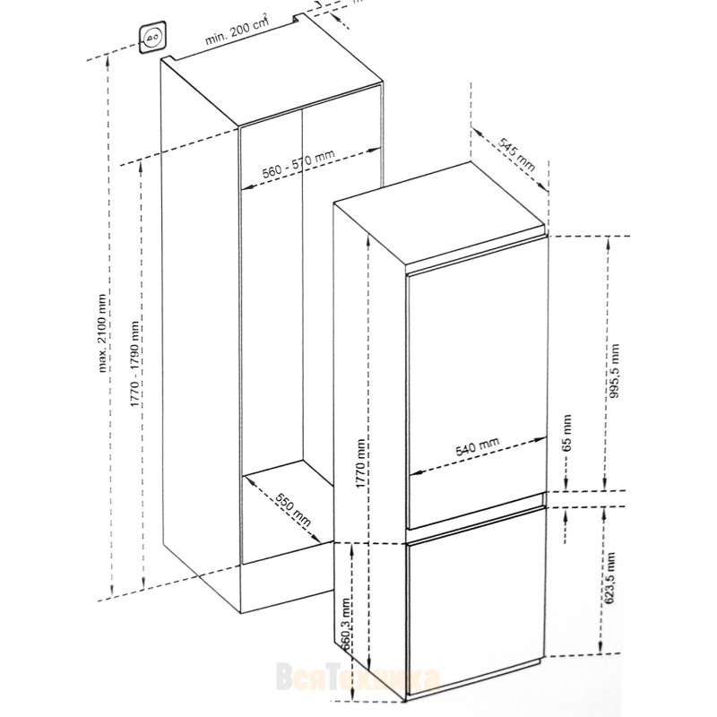 Тип | Встраиваемый холодильник с морозильной камерой |