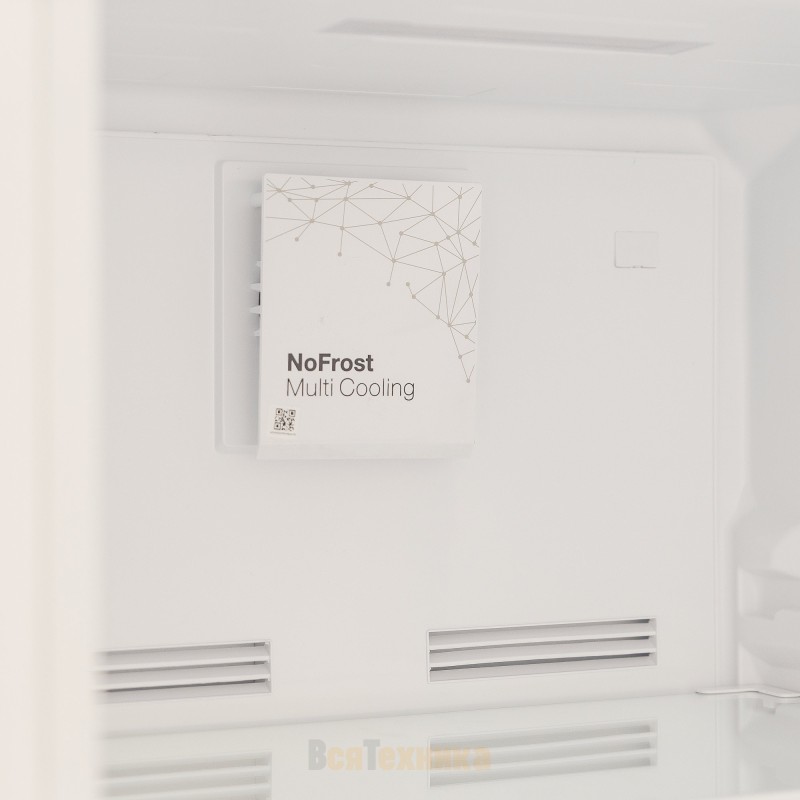 Обе камеры оснащены технологией No Frost, которая исключает образование наледи и обеспечивает равномерное распределение холода. Скорость замораживания достигает трёх килограммов в сутки, а автономное сохранение холода длится до двенадцати часов при отключении электричества. Температура в морозильном отделении может опускаться до минус восемнадцати градусов, что соответствует стандарту длительного хранения продуктов.