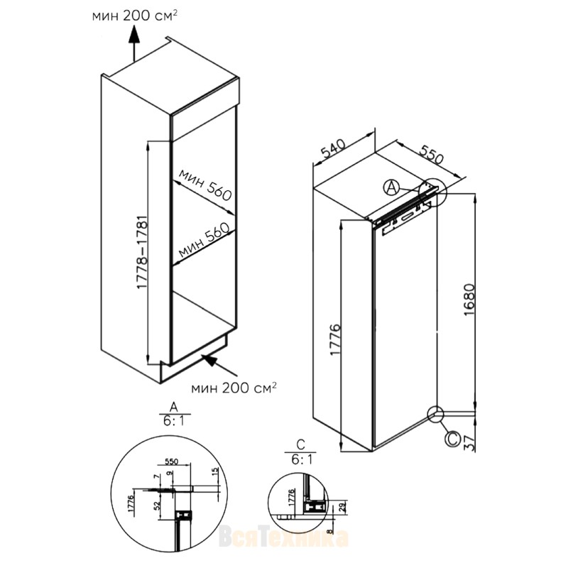 Размеры ниши для встраивания (ВхШхГ)(см) | 178,1x112,8x56 |