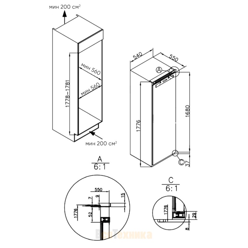 Размеры ниши для встраивания (ВхШхГ)(см) | 178,1x112x56 |