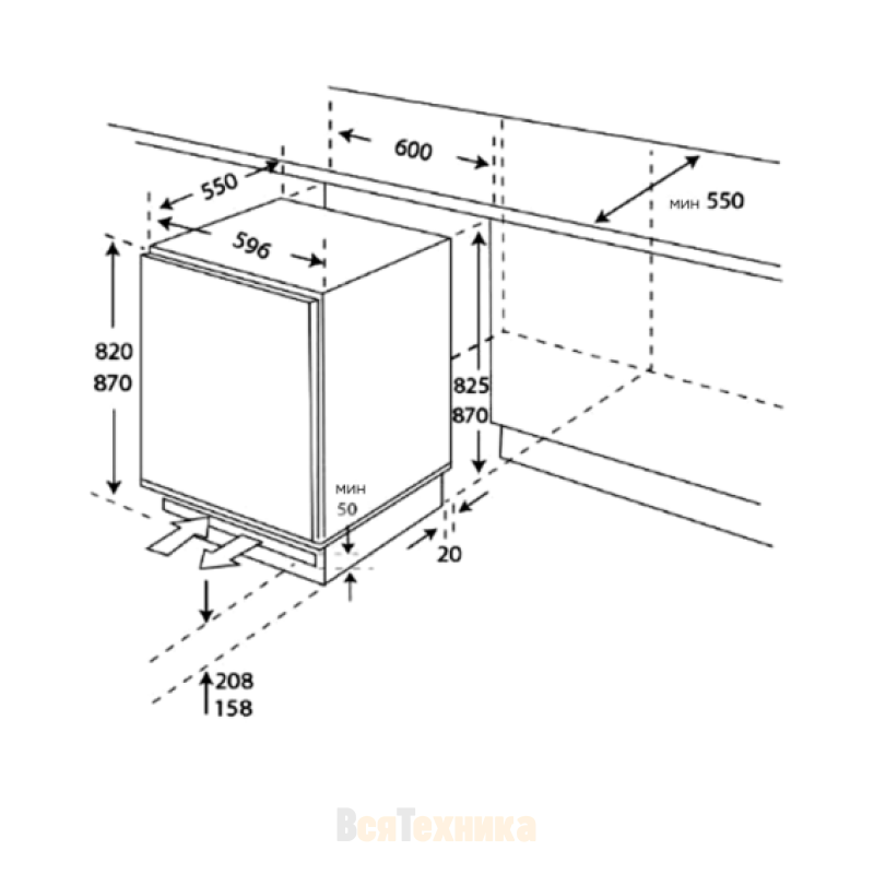 Размеры ниши для встраивания (ВхШхГ)(см) | 82,5x60x56 |