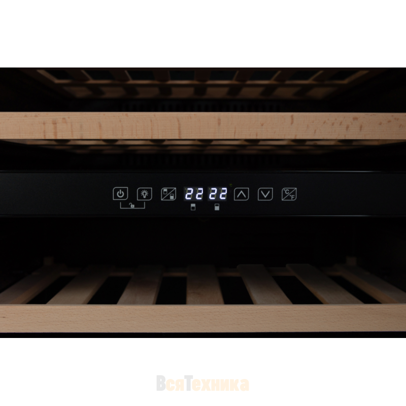 - 2 раздельные температурные зоны, регулировка температуры в диапазоне 5-22 °C