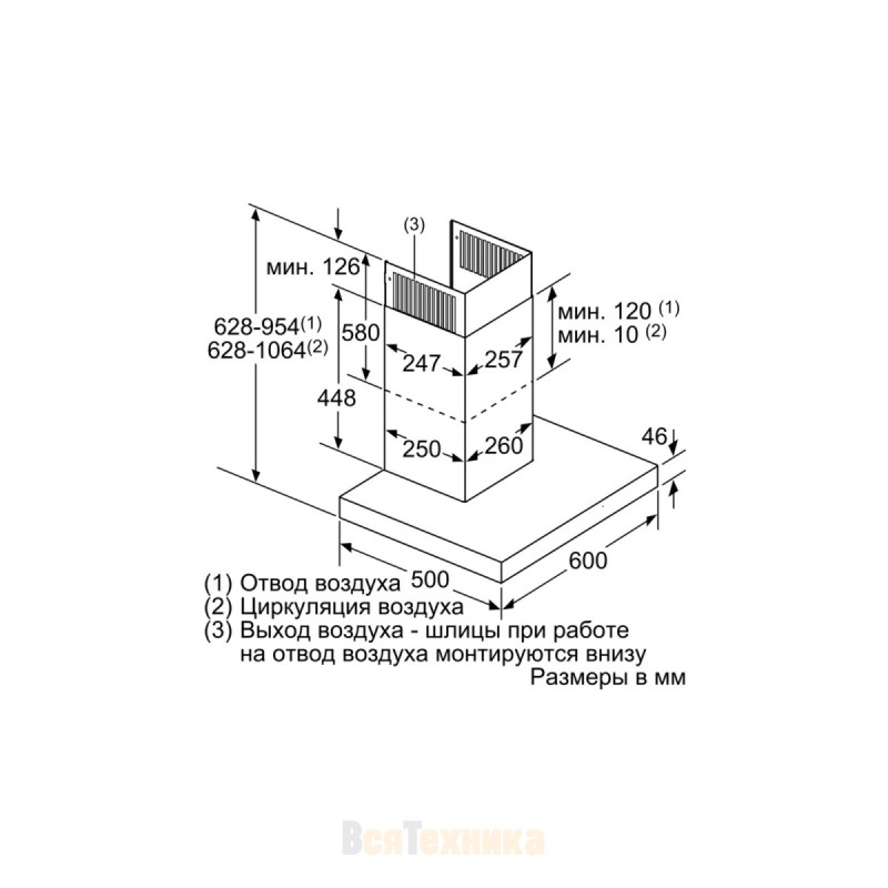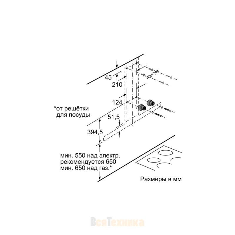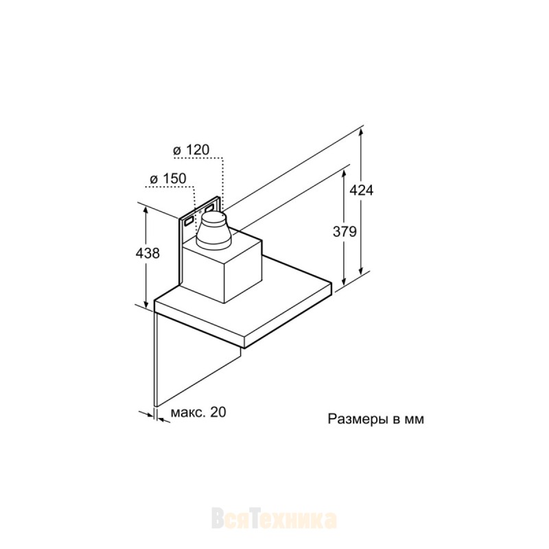 Каминная вытяжка Bosch DWB67CM50 для настенного монтажа убережет мебель в кухне от жира и копоти.