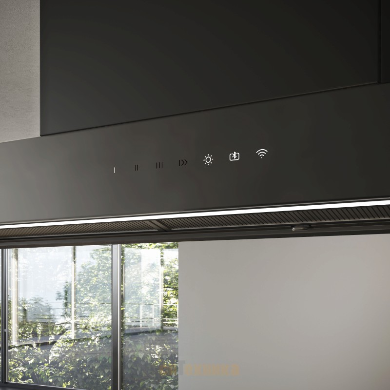 Управление вытяжкой осуществляется электронно, с помощью сенсорных элементов, делая ее использование максимально удобным и интуитивным. В устройстве предусмотрено три скорости работы и интенсивный режим для справления с особо сильными запахами. Также стоит отметить наличие светодиодного освещения, которое обеспечивает равномерное и яркое освещение рабочей зоны. Мощность каждой из ламп составляет 7 Вт, а цветовая температура – 3500 К, что создает комфортное и приятное для глаз освещение.