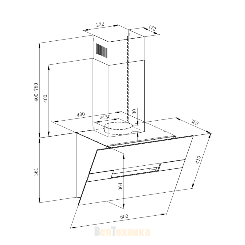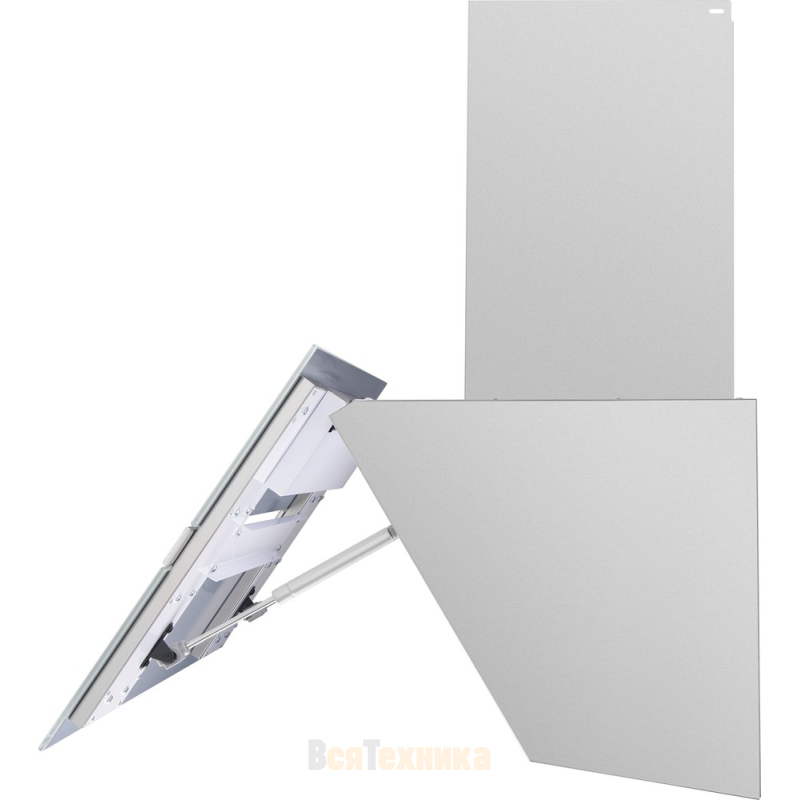 Ключевые особенности Тип вытяжки: наклонная, Тип монтажа: настенный, Цвет: нержавеющая сталь + белый, Ширина, см: 60, Количество скоростей : 3