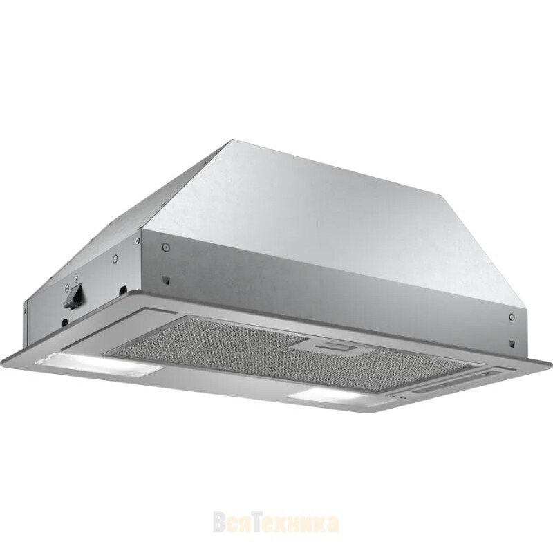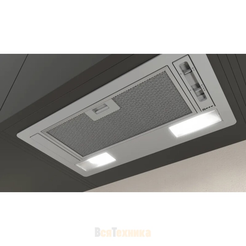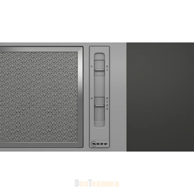 Вытяжка Neff D51NAA1C0 представляет собой современную встраиваемую модель в серебристом цвете из нержавеющей стали.