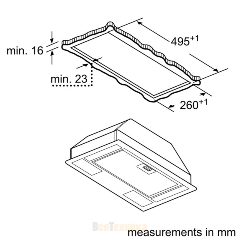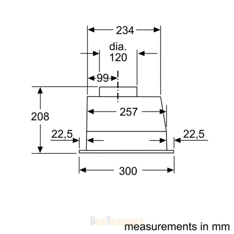 Конструктивные особенности определяются габаритами: высота 20.8 см, ширина 53.4 см, глубина 30 см. Вытяжка монтируется в шкаф, корпус выполнен из металла, вес устройства составляет 4.5 кг, длина электрического кабеля — 150 см.