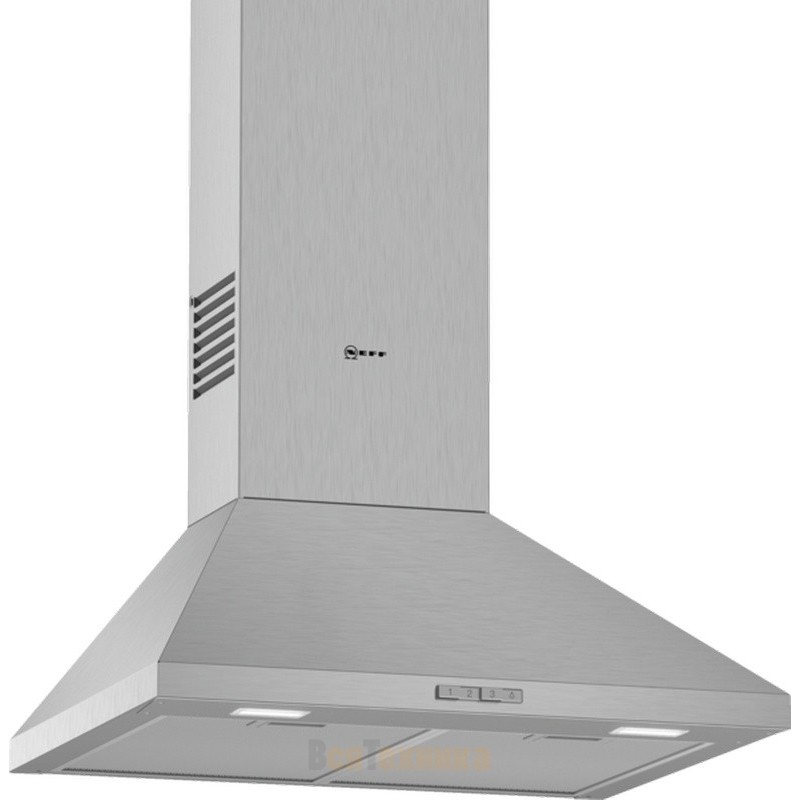 Вытяжка Neff D62PBC0N0 представляет собой стильное решение для эффективной вентиляции кухонного пространства в дизайне из нержавеющей стали с пирамидальной формой.