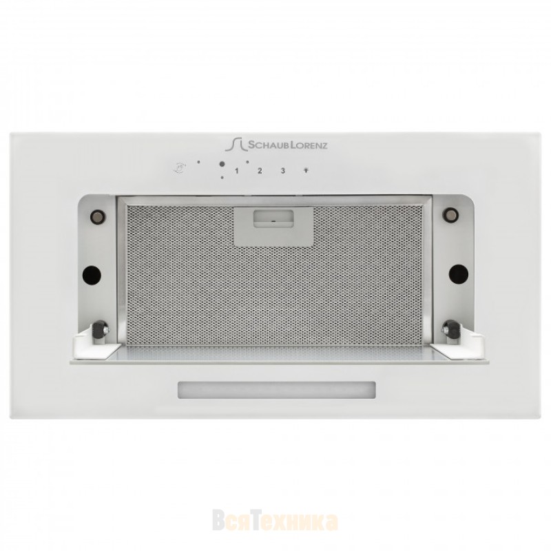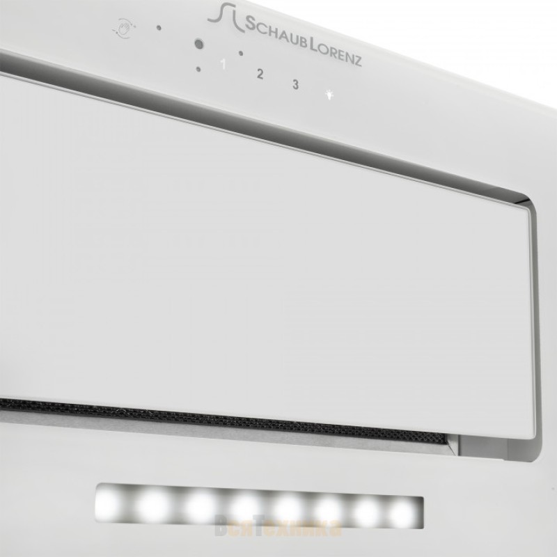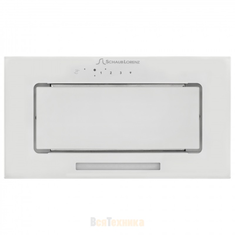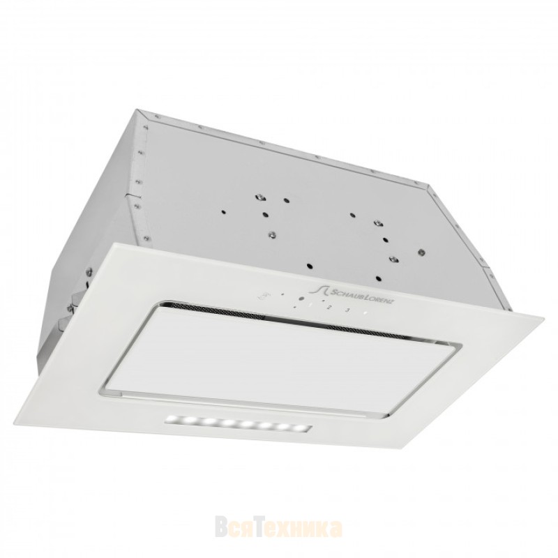 Встраиваемая вытяжка Schaub Lorenz SLD EL5215 белого цвета с вставкой из стекла изготовлена из нержавеющей стали.